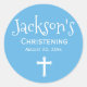 Un bel arrière - plan bleu clair rend cet autocollant de baptême parfait pour un bébé garçon. Le texte et la croix sont tous deux en blanc. Le nom du garçon est écrit dans une police ludique. Le baptême et la date de baptême sont écrits dans une police simple et moderne. Tout le texte peut être facilement édité. Vous pouvez également modifier la police et la couleur du texte. La couleur arrière - plan peut également être modifiée