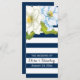 Fleurs rayures bleu foncé cérémonie moderne florale mariage et programme de fête avec élégantes fleurs blanches et bleues deux tons avec feuilles verts sur un motif rayé en rayures bleu marine et blanc. Cette élégante modèle mariage contemporaine est entièrement personnalisable et est idéale pour un mariage de printemps ou d'été.