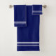 Élégante bande blanche sur le kit de serviettes bleu marine.