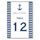 Cartes de table à thème marine bleu et blanc. Une partie d'une suite de mariages plus grande ・ Nautique, en mer, en mer ・ Cartes de table ・ Bleu et blanc de la marine