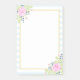 Fancy Post-it® Notes avec rose, feuilles verts et bleuets sur bandes bleu clair, Merci d'or (l'or n'est pas l'or véritable mais la couleur). Fancy, féminine, ornée, mais élégante, avec un look et une atmosphère légèrement victorienne. Rose, bleu clair, violet profond, vert.