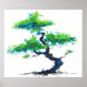 illustration traditionnelle d'aquarelle d'un bonsaï en vert et bleu comme imprimé d'affiche