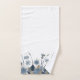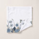 Elégant design floral bordé de fleurs bleues et beiges avec de hautes tiges et des feuilles sur un arrière - plan blanc propre, créant un look doux, moderne et sophistiqué.