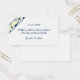 Cette étiquette de faveur de mariage est décorée d'un bar sodalite bleu et jaune damassé superposé sur un arrière - plan blanc.