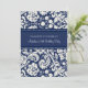 Custom 75th Birthday invitations à la fête dans l'élégant bleu marine foncé, crème et blanc classique floral damask vintage motif . Ajoutez votre nom et vos coordonnées pour une invitation unique et élégante à la fête d'anniversaire.