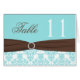 La carte bleue et blanche de cet aqua de damassé de table de nombre avec le ruban et les bijoux de FAUX assortit le faire-part de mariage montré ci-dessous. Si vous avez besoin de n'importe quels autres articles assortis, envoyez svp votre demande à niteowlstudio@gmail.com.