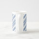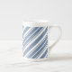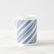 Une jolie tasse de café de porcelaine tendre, avec un motif rayé de coutil de bleu et de blanc d'indigo. Une partie de la collection snob et Painterly de "indigo". Ce motif peut facilement être ajusté pour adapter n'importe quelle tasse.