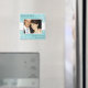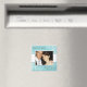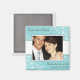 Magnet Réservez la date, avec votre photo sur un élégant arrière - plan tourbillon fleuri bleu et blanc. Ajoutez votre photo et entrez vos informations dans notre modèle convivial.