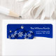 Étiquettes d'adresses de retour personnalisées modernes de Noël, avec des ornements de Noël de flocon bleu sur un arrière - plan de neige. Montré en bleu royal et blanc. Personnalisez facilement !