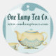 Étiquette-cadeau de théière et tasses à vapeur ou étiquette produit/emballage pour vendeurs de thé ou de café, thé mélangé à la main, thé, biscuits et dessert. Teapot et tasses en jaune et bleu terne avec des fleurs et un gros bouffon de vapeur.