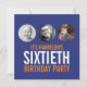 Bleu marine et contraste orange vif et blanc double face 60ème anniversaire invitation. Personnaliser d'invitation graphique avec vos propres détails et trois photos de votre fille ou garçon d'anniversaire. Design unique par Sarah Trett pour www.mylittleeden.com