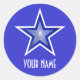 Bleu foncé Star 'Nom' rond autocollant bleu