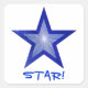 Bleu foncé Star 'STAR!' autocollant carré blanc
