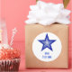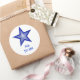 Bleu foncé Star 'Your Text' rond autocollant blanc