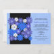 Une élégante invitation à la douche nuptiale pour la mariée moderne avec des marguerites gerbées sur un arrière - plan noir. Disponible en couleurs alternatives. Veuillez nous contacter si vous cherchez une autre combinaison de couleurs. Des cartes de remerciement, des faveurs et des frais d'affranchissement sont également disponibles.