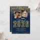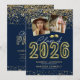 Célébrez deux diplômés avec ces élégantes invitations à la fête de remise des diplômes 2024 avec des photos des grades, un arrière - plan bleu branché, une parties scintillant faux or, le titre "classe de 2024" dans un script et un signe de néon or, et un modèle de texte moderne facile à personnaliser.