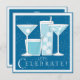 Un design cool et rétro est une excellente invitation aux fêtes d'hiver avec des cocktails de bleu glacé ornés de touches de flocon de neige.