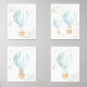 Ajoutez des touches de finition à la crèche de votre bébé ou à la chambre de votre enfant avec ces magnifiques gravures d’art ! Le design comprend une montgolfière bleue, des animaux (lapin, ours, éléphant), une lune, des nuages et des étoiles.