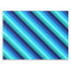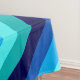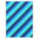 Une nappe de 52" x 70" avec un design motif cool de bandes diagonales en bleu marine, bleu cobalt, bleu ciel, turquoise menthe glacée et turquoise clair.