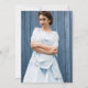 Élégante invitation photo de la fête de remise de diplômes avec bordure florale bleu décorative sur un front jaune pastel arrière - plan, et la photo du diplômé sur le dos.