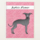 Illustration originale de Destei d'une jolie couleur bleue Italien Greyhound / Chien de race Iggy sur une couleur arrière - plan rose avec un motif de coeurs de différentes tailles. Il y a aussi une zone de texte personnalisable pour le texte personnalisé.