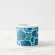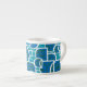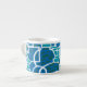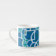 Un élégant café Espresso Mug avec un motif abstrait turquoise, bleu profond, vert mer et blanc, à partir d'une sérigraphie de Judy Adamson.