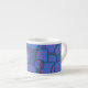 Un élégant café Espresso Mug avec un motif abstrait bleu électrique et magenta, à partir d'une sérigraphie de Judy Adamson.