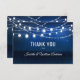 Elégant bleu nuit et argent cordes lumières mariage carte de remerciements. Le texte peut être modifié en utilisant à droite le menu "Détails". Pour tout adapter à vos besoins, cliquez sur le bouton "Personnaliser" et vous pouvez modifier le style de texte, le papier et le papier. D'autres couleurs sont disponibles. Vous pouvez modifier le type de papier sur le côté droit du menu "Comparer les papiers". Veuillez me contacter si vous avez besoin d'aide, pour les articles correspondants ou si vous avez des souhaits spéciaux.