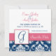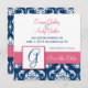 Cartes de sauvegarde de date avec motif damassé bleu marine et blanc, initiale de monogramme, noms avec couleur d'accent rose de chèvrefeuille. Conception d'invitation par Elke Clarke ©2009. Graphiques sous licence d'utilisation. Personnalisez avec votre monogramme, vos noms et les informations d'invitation de mariage. Choisissez également parmi une variété de polices et de beaux papiers pour rendre vos invitations de mariage FABULEUSES ! Contactez-nous pour des modifications de couleurs via le contact de la boutique ou à luxuryweddinginvitatins@gmail.com