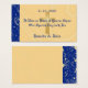 Cette carte de mariage est décorée de croix chrétienne dorée et de barres damassées bleu et or sur un arrière - plan damassé or.