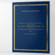 Un programme triplé élégant. Un arrière - plan bleu marine, un cadre en faux or et un espace pour votre photo. Personnalisez et ajoutez le nom, les dates et votre texte.