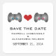 Le chic original et totalement geeky est ce Chic Mignonne Gamer Save the Date Stickers avec un contrôleur de jeu vidéo avec des boutons bleus et un avec des boutons roses. Un coeur au milieu connecte les deux contrôleurs. Ces nerdy sauvent les autocollants de date sont parfaits pour le couple de jeu. Facile à customiser, il suffit d'ajouter les détails de votre mariage. Cliquez sur "Customiser" pour trouver d'autres options de personnalisation.