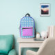 Sac à dos motif mélangé rose bleu. Sac à dos bleu violet créatif esthétique multimotifs. Un sac à dos bleu rose de style unique et créatif. Style éclectique et artistique retour au sac à dos de l'école. Un sac à dos élégant et de mode brillant. Couleurs roses bleues design excentrique. Le diamant et les points d'origine mélangent le sac à dos motif.