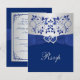 Cette jolie carte de réponse de mariage florale bleu royal et gris argenté comporte un ruban IMPRIMÉ bleu et une paire de bijoux en diamant IMPRIMÉS et des cœurs joints en FAUX strass qui correspondent à l'invitation de mariage présentée ci-dessous. Le choix du papier est personnalisable. ****VEUILLEZ NOTER - tout sera imprimé tel qu'il apparaît sur votre écran. Je ne verrai pas votre invitation et Zazzle ne modifiera rien. Si vous avez besoin d'aide pour personnaliser cette carte, veuillez m'envoyer un e-mail AVANT de passer votre commande. Si vous avez besoin d'autres articles assortis, veuillez envoyer un e-mail à niteowlstudio@gmail.com.