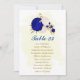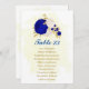 Romantique bleu royal & fleurs blanches avec carte de sièges mariage botanique feuille or. Les détails de la parties scintillant sont simulés.