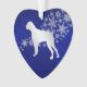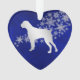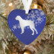 Ce joli ornement de vacances fera un merveilleux cadeau de gardien pour quiconque aime un Boxer! Il présente une silhouette argentée Boxer image de chien devant un spray de flocons de neige argentés ornés. L'image est placée sur un arrière - plan bleu profond dégradé. L'arrière de l'ornement a le même arrière - plan bleu et des flocons de neige, et un champ de texte pour vous de customiser. Belle !