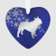Ce joli ornement de Noël fera un merveilleux cadeau de gardien pour quiconque aime un Bulldog ! Il présente une image de bulldog en silhouette argentée devant un jet de flocons de neige en argent orné. L'image est placée sur un arrière - plan bleu profond dégradé. L'arrière de l'ornement a le même arrière - plan bleu et des flocons de neige, et un champ de texte pour vous de customiser.