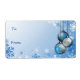 Balise cadeau festif avec ornements suspendus bleus et arrière - plan de flocon de neige. Modifier la taille et le texte d'un étiquette de adresse de vacances customisé. Invitation correspondante disponible.