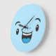 Bleu Souriant Kawaii Face Mur Horloge