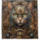 bleu steampunk chat AI art douche rideau