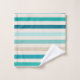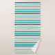 Cette serviette de bain de plage est en bandes côtières de lagon, bleu, turquoise, turquoise et sable.