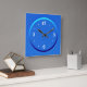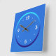 Une horloge bleue simple avec des chiffres blancs. Ce design d'horloge simpliste a un anneau aqua et bleu foncé entourant les chiffres. Disponible en formes carrées et rondes. Convient pour votre propre cuisine ou toute autre pièce de la maison. Également recommandé comme cadeau pour des occasions spéciales.