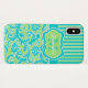 Cette bande moderne, personnalisée, bleu turquoise, vert et blanc avec Coque damassé Mate Barely There™ iPhone X Coque a des points pour vous d'ajouter votre nom et monogramme. Si vous avez besoin d'aide pour customiser ceci, veuillez envoyer un courriel à niteowlstudio@gmail.com.