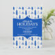 L'invitation présente un motif d'arbres de Noël bleus fantaisistes avec les détails de la fête écrits dans un cadre bleu. Cette belle carte peut être utilisée pour les invitations de fêtes de Noël/invitations de fêtes de Noël ou même pour les invitations de Noël à la maison ouverte! Une face arrière assortie ajoute à la beauté du design.