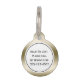 Paw print and faux gold personalized pet ID tag for blind pets with faux gold metallic background and embossed look, faux foil rose gold paw print. Custom pet's name in black script. Reads 'I'M BLIND' at bottom in curved text. Back has phone number with name and custom contact details in case pet gets lost on easy to read white circle with faux gold metal border. Note: All images are printed. Not actual gold metal or foil.