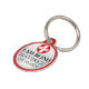 A white cross with ICE (in case of emergency) rests on a faux shiny orb circle set against a solid red background that has custom templates for your personalized wording.