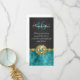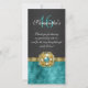 This flat, skinny card has a beautiful gold chain encrusted with pearls and diamonds, set between a charcoal grey and vibrant teal blue damask infused, faux suede background.
