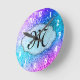 Bling Glitter Girly Pink Purple Teal Aqua Blue Glitz Glamour Monogram Initial Wall Clock Personalized