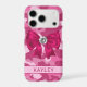 Customize this blingy pink camouflage iPhone 17 pro case with your name in a trendy modern CAP font in dark pink on light pink. It's so blingy, girly and chic! Perfect for any country girl!
