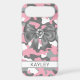 Customize this pink, gray and white camouflage iPhone 17 air case with a gray satin bow with a diamond center and your name in a trendy modern CAP font in dark gray on white. It's so blingy, girly and chic! Perfect for any country girl!
